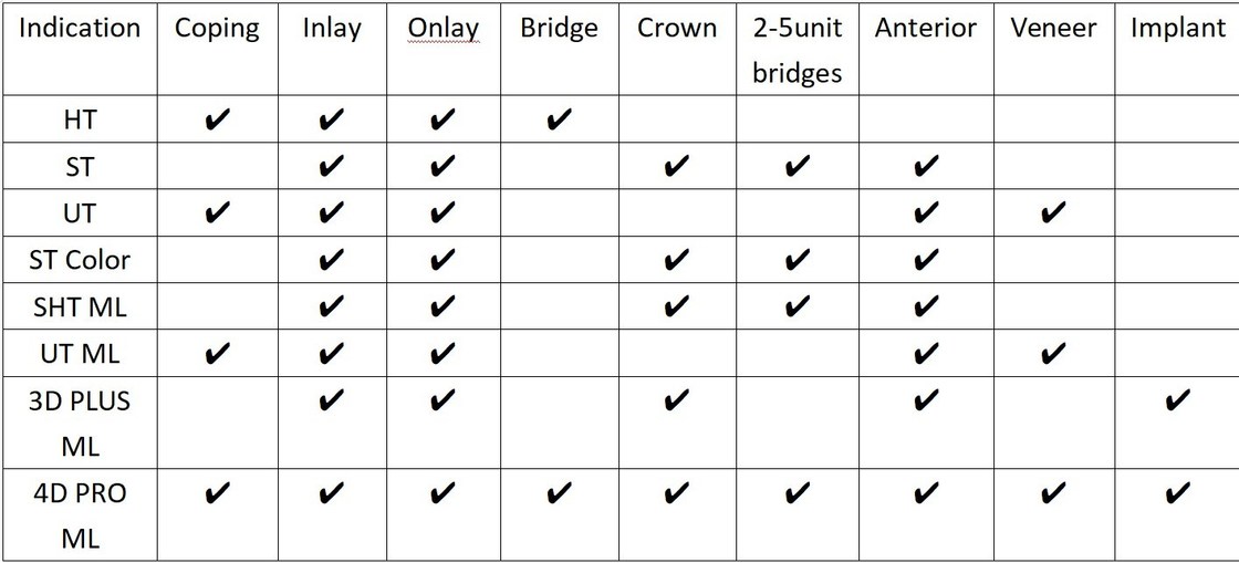 This type of multilayer zirconia block can make both posterior teeth and anterior teeth. One zirconia block to cover all indications.