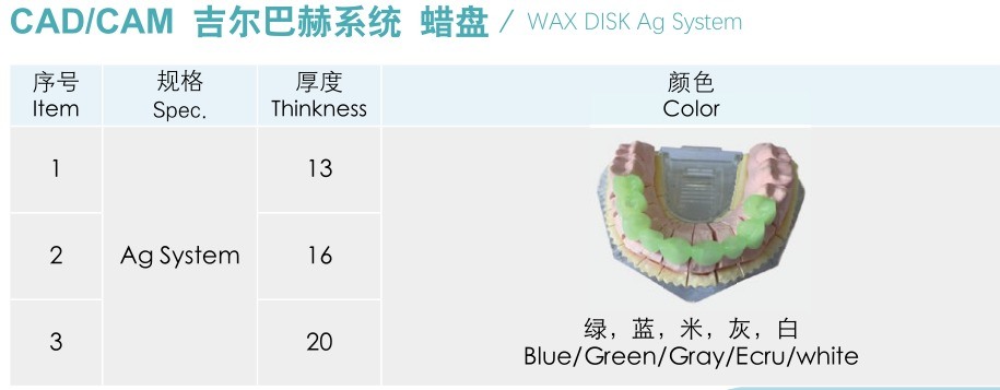 The wax block is compatible with dental lab for making all male molds of oral tissue. Special for dental CAD/CAM system wax, wax mold teeth crown and bridge