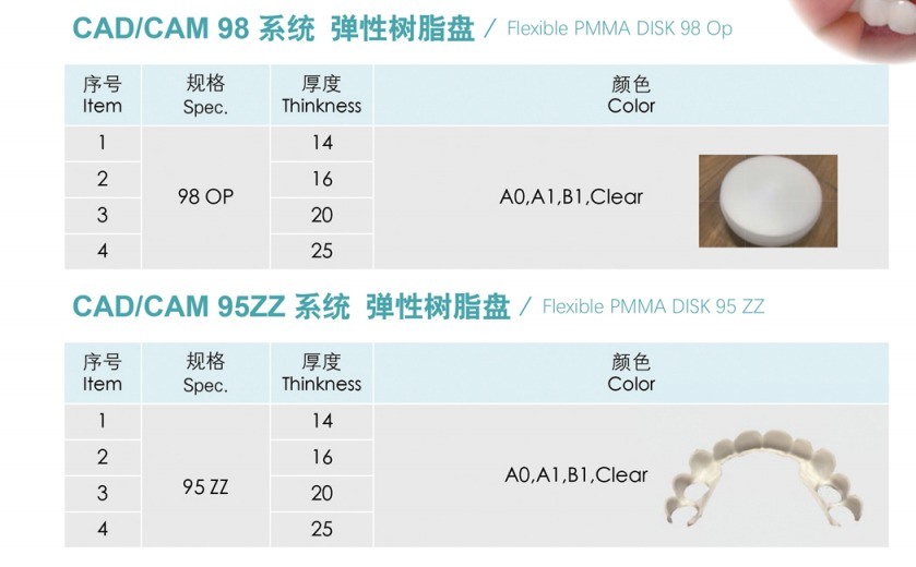 แผ่นเรซิน PMMA ชั้นเดียว Yucera Dental Premium สำหรับการใช้งานทางทันตกรรม 14